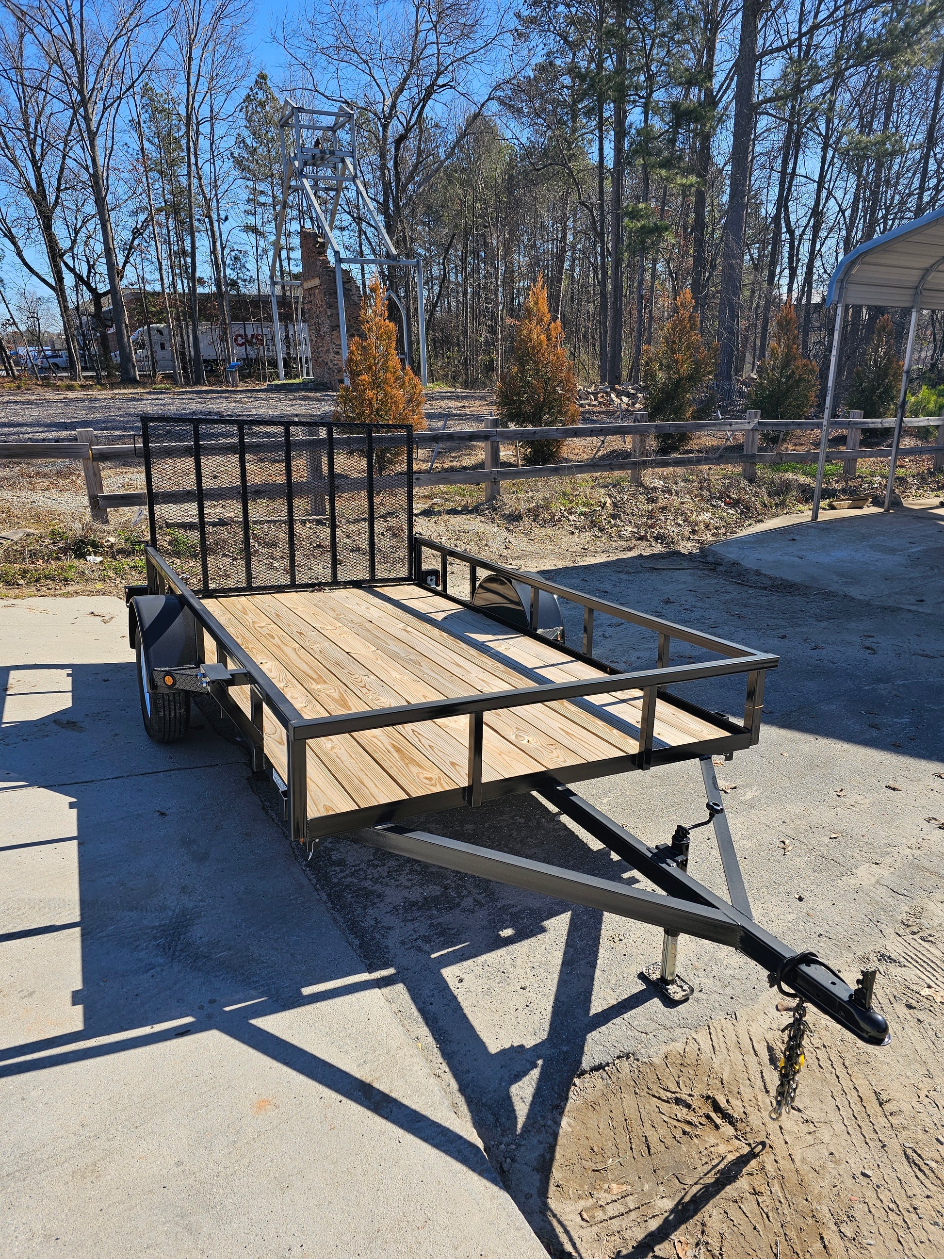 6X12 Superior Elite trailer, with square tubing sidewalls and uprights, 4' tall tailgate, 15" tires, DOT compliant L.E.D lights, and spare tire holder.