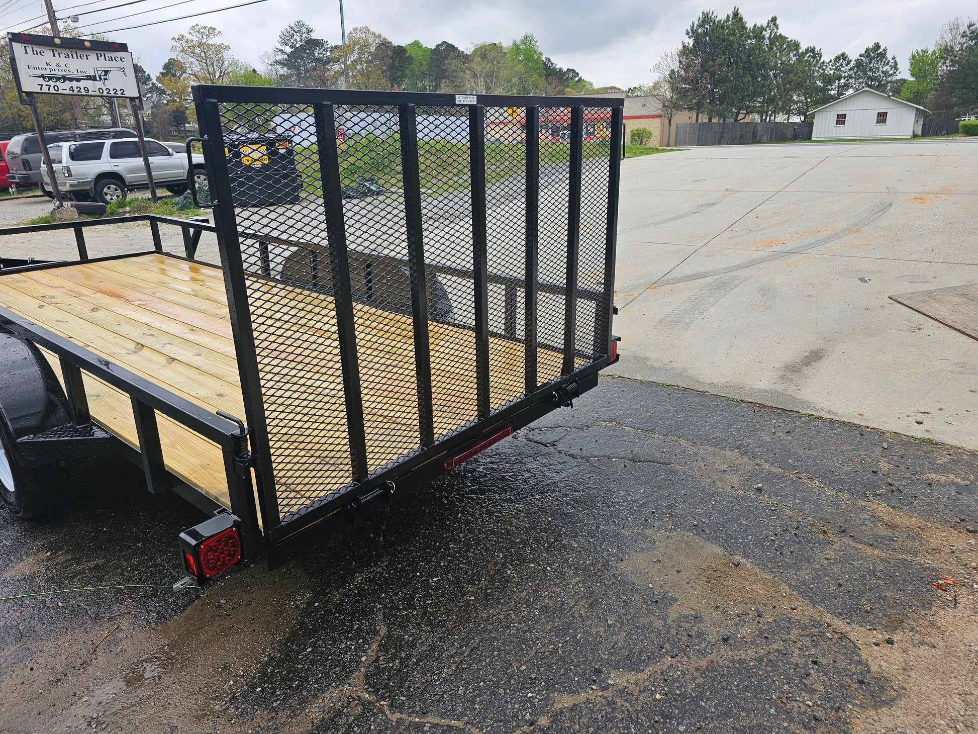 16' utility trailer 15" tires, spare tire holder, 4' gate with spring assist, wood floor, L.E.D light to DOT specifications, square tubing top rail and uprights, 4 wheel brakes and DOT required breakaway kit.